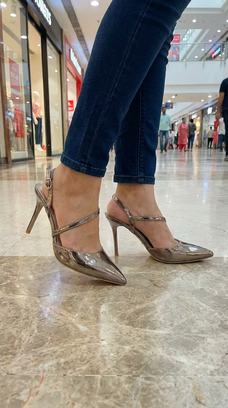 Women HeelsElevate your footwear collection with these exquisite metallic bronze slingback high heels. Designed for both fashion and comfort, these shoes boast a sophisticated pointed toe that elongates the leg. The intricate criss-cross strap detailing adds a touch of modern allure, while the adjustable buckle closure ensures a secure and personalized fit. Crafted with a shimmering metallic bronze finish, these heels are sure to turn heads and complement a wide range of outfits, from elegant evening gowns to chic cocktail dresses. Make a statement with every step in these must-have slingback pumps.
